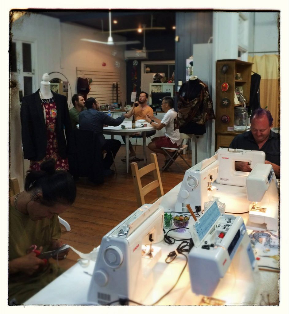 Taking a showing-not-telling response we designed a sewing course for ‘dudes’. This disruption showed male identifying people sewing. Affecting the bias to reframe the activity.